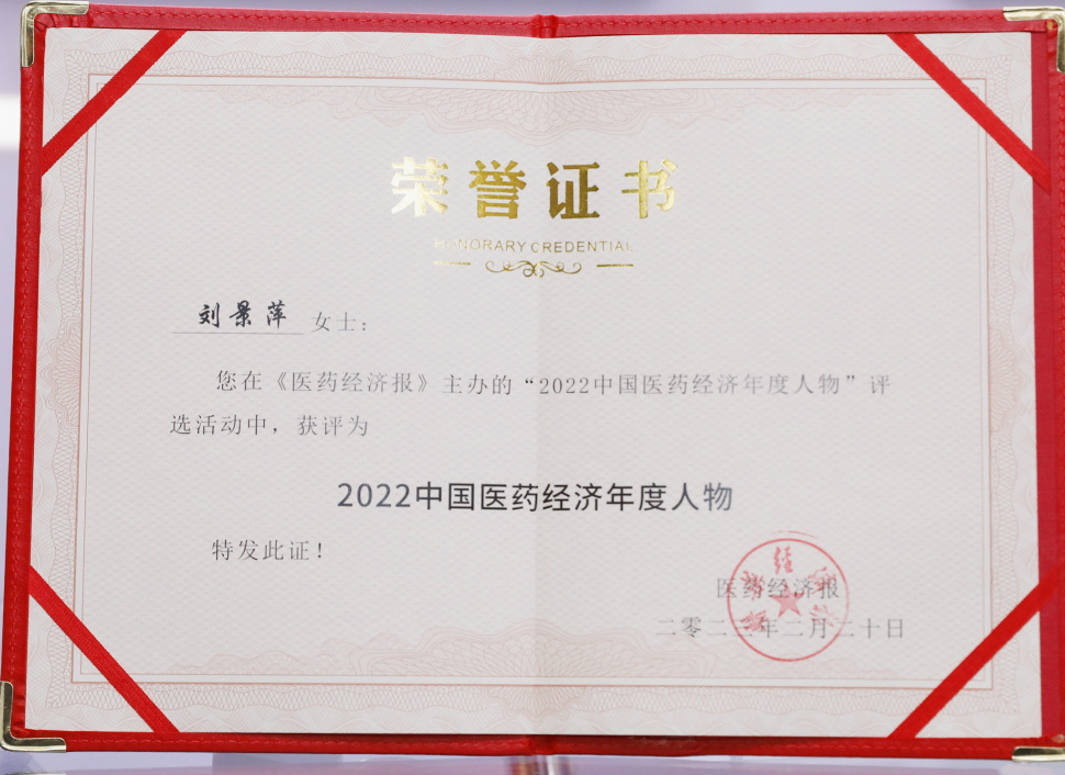 Z6·尊龙药业集团董事长刘景萍当选“2022中国医药经济年度人物”